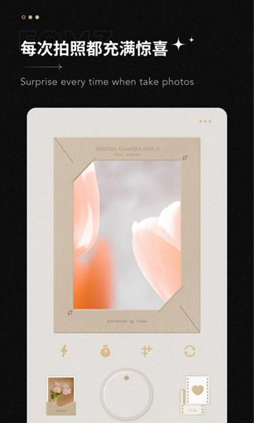 复古胶片相机Fomz是款实用的拍照软件,这里有非常多的滤镜和特效。我们可以快速拍摄出自己喜欢的照片效果,同时它还能帮助我们保存下来哦!