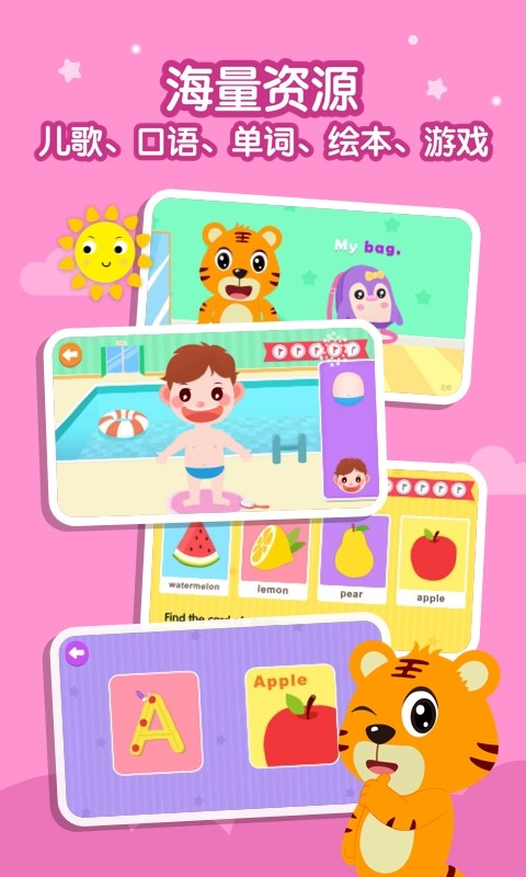 拥有海量英语学习资源,通过儿歌、故事以及绘本的方式来让孩子轻松的学英语,趣味学习模式激发孩子的英语兴趣,欢迎来绿色资源网下载!