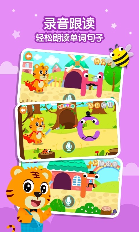 以及跟读单词,通过有趣的游戏方式提升小朋友的英语学习兴趣,让宝宝轻松学习纯正美式的口语和汉语英语的发音和汉语英语的拼写。
