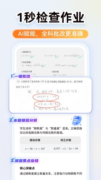 可以帮助用户在手机上进行智能批改操作,一键就能自动完成识别。使用简单、快速方便,有需要的用户快来下载吧!