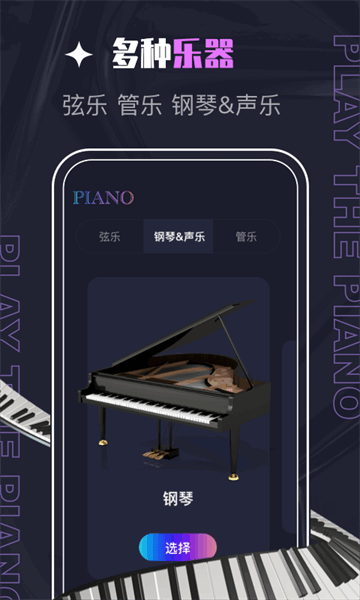汇聚了众多的乐器种类,涵盖钢琴、贝斯、小提琴、古筝等,确保用户都能找到心仪的乐器伴奏。