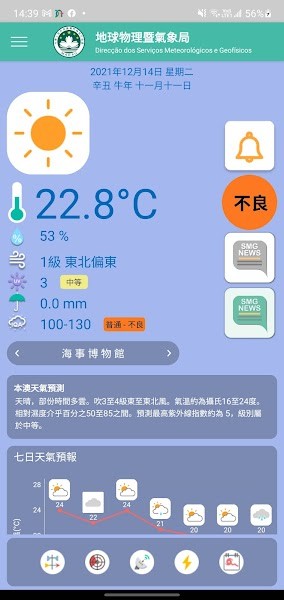 1、在澳门天气app上你可以了解到澳门的天气预报动态,及时了解当地的天气情况。