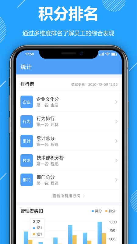 显示员工在各个部门中排名情况,提升管理效率;