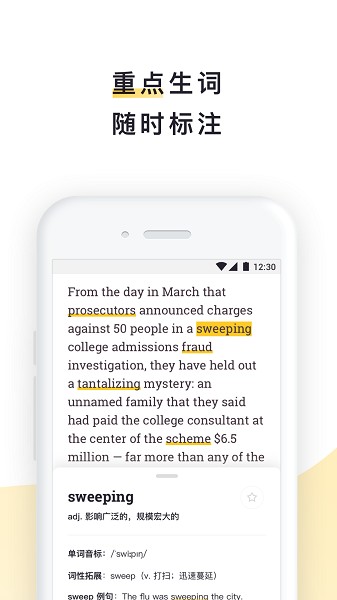 【智能打分系统】内建语音识别技术,实时对用户的英语发音进行打分和纠错,有效提升口语水平。