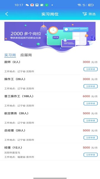 --个性化的筛选条件大家只需要输入关键字就可以极速搜索得到想要的服务蓝天工匠求职者为学生提供职业发展和就业机会,这里有丰富的职位信息可以选择查看。你可以根据自己的需求来搜索自己需要的职位内容,还可以在这里直接申请面试,让招聘更轻松。软件上还有很多的招聘信息可供大家参考,欢迎有需要的朋友下载使用!