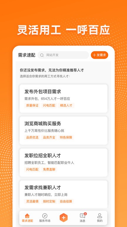 我们还提供了强大的搜索引擎功能,只需输入关键词或品牌名称,猪八戒网就能迅速呈现出相关的职位详情。猪八戒网app是一款非常优质的手机端招聘求职软件,软件中有着海量的实用功能等你体验,用户可以在线搜索自己需要的职位内容进行浏览查看,操作简单易上手,还可以与企业人事直接沟通交流,对软件感兴趣的话不妨点击下载试试!