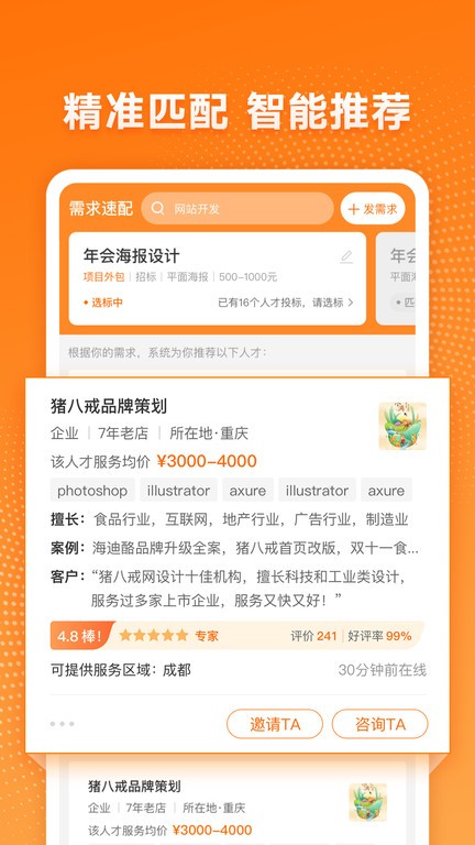 猪八戒网接单赚钱app特色