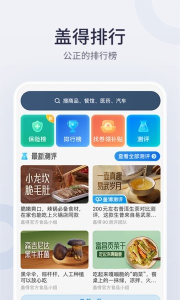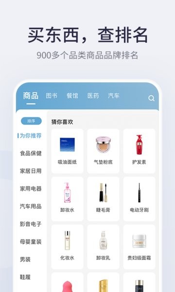 盖得排行App提供最全面最准确的商品排名,包括但不限于:电子产品、电器、家用电器、家具、化妆品、手表、鞋子等,是您必备的购物神器。
