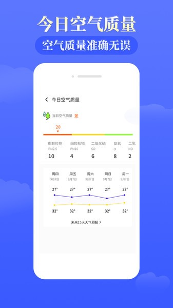 阴阳春晚各个阶段的天气预报天气预报天气情况预报天气情况,天气预报小部件,天气变化一目了然,空气质量实时查看。天气情况一键切换显示,精准的天气信息随时掌握,天气预警、空气质量指数等功能提供给用户的使用;天气预报更新快速准确,可以根据定位位置自动获取当前天气状况,让您出行无忧。