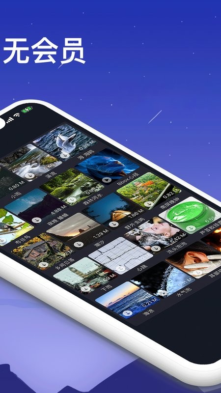 超过50种高品质的自然声音和舒缓音乐。