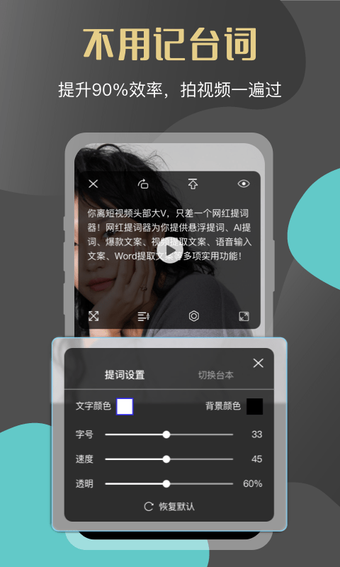 悬浮窗提词:搭配任意APP使用的提词器。