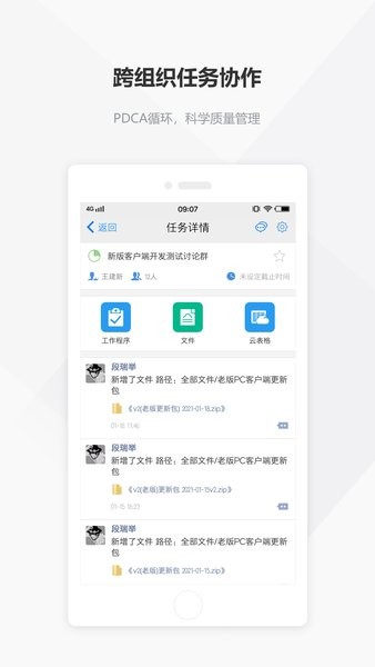 提供丰富的工作应用场景:考勤、审批、日志、公告、请假、加班、出差等。