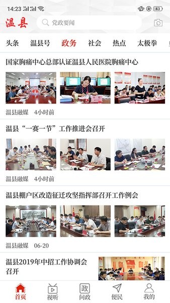 拥有海量的新闻频道,包括头条、头条、视频、时政、财经、科技、财经、国际等多个领域。《温州温县新闻资讯平台》app是一款专为当地居民打造的新闻资讯阅读软件,用户可以在这里了解到最新的本地新闻、政策解读等等内容,还可以了解本地生活圈的大小事,感兴趣的话就赶紧下载体验吧!