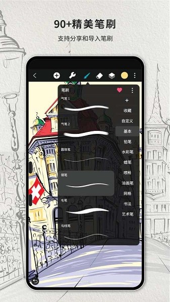 -使用多种预设和自定义画廊(如图库)创建和编辑绘图。