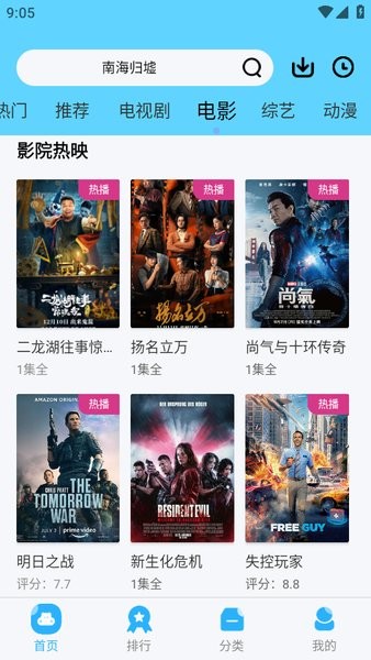 1、首页上可以看到近期热播的电影、电视剧以及动漫等类型的热播剧;