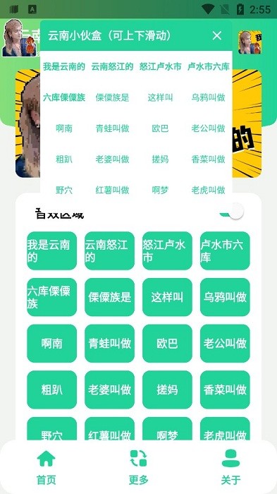 【云南小哥盒】是云南省的鸡叔音语录的语音库,拥有各种各样的音频类型,包含了:萝莉音、大妈音、御姐音、清纯音等等。