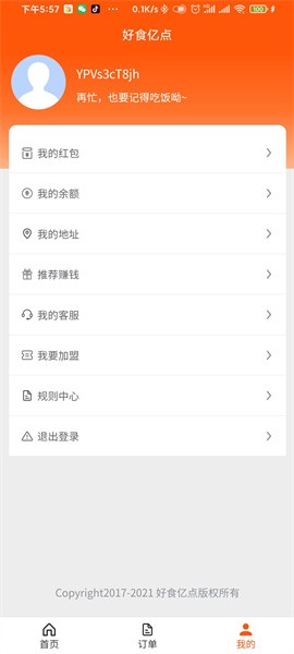1、进入好食亿点外卖app,点击我的-设置选项;