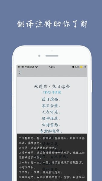 支持离线功能,可以提前下载喜欢的诗词,方便随时阅读,无需网络连接。