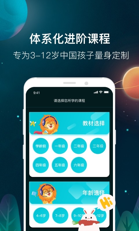 5、课程采用真人语音交互模式,对标美国主流英语学习方法,让孩子轻松说英文。