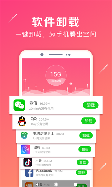 1、一键清理:一键搞定无用的缓存和垃圾文件,手机清理更省心