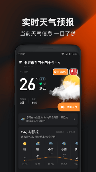 可查看国内城市每时每刻天气预报,及时了解雨雪天气变化;