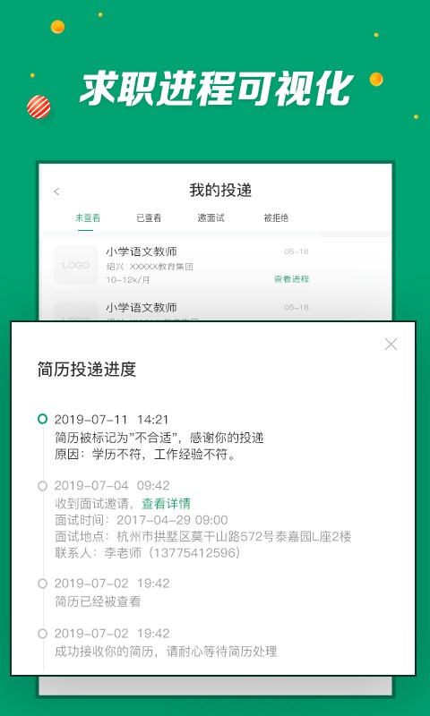 实时掌握求职动态,不错过了每一个好机会;