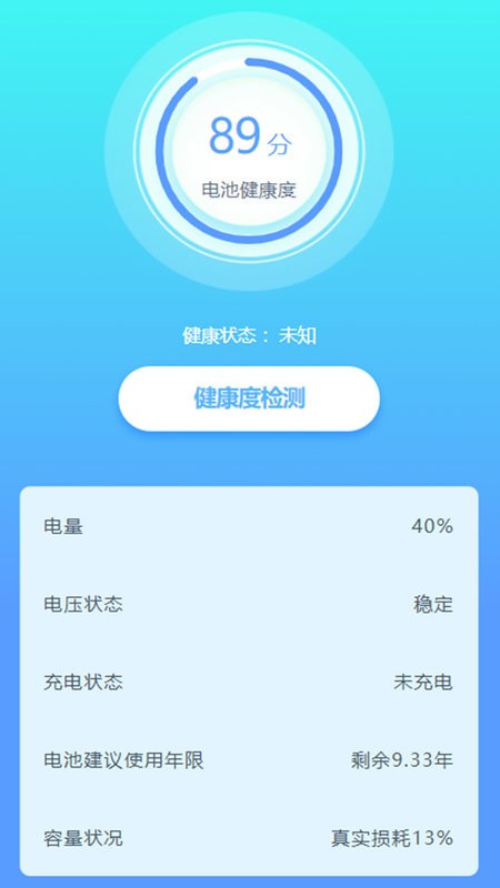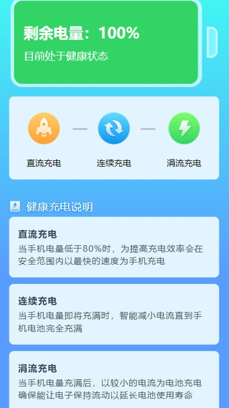 -通过电池健康分析,了解电池健康状况,并针对性给出建议。充电桩使用后台插件app是为安卓用户打造的手机电池健康状态显示设置提醒,让你实时知晓电量和手机电池状态信息。支持多种模式查询、电池温度计等功能!本软件可以对你充电的设备进行智能检测!欢迎下载使用!