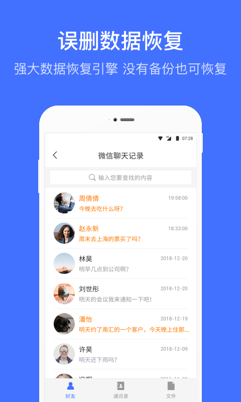 3、备份记录:当您更换手机或删除的联系人时,应用程序会自动备份记录列表,以便您可以及时了解以前的恢复情况。