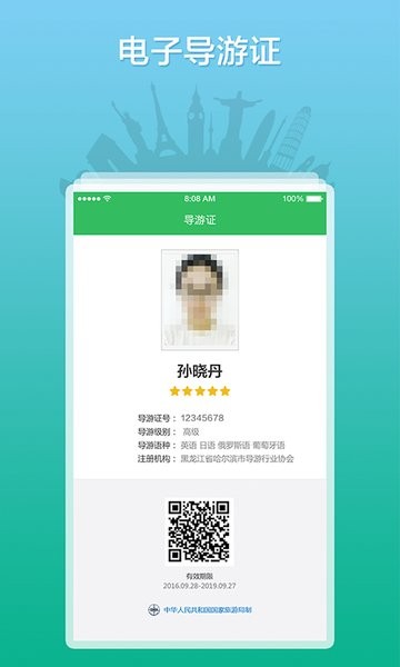 3、通过二维码扫描获取导游相关信息或联系电话(如导游姓名、电话号码)、电子邮箱等附件;