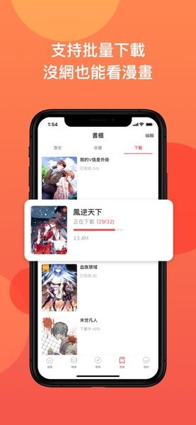 2、离线缓存:支持将漫画进行离线缓存,方便在没有网络的情况下也能随时随地欣赏漫画,节省流量;