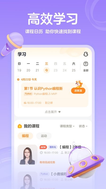 5、家长们还可以直接在平台上观看直播课;小鹿编程学习进度展示孩子学习进度信息显示,是目前小鹿编程学习进度展示的软件,非常的好用,让用户们在平台上可以快速进行学习。有兴趣的用户赶快来本站免费下载小鹿编程学习进度展示app体验吧!