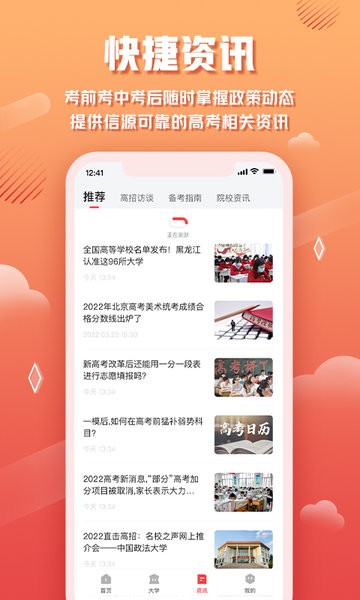 提供高考指南、志愿填报、高考政策资讯等丰富实用的功能。《网易高考智愿填写上成绩给自己喜欢的人或学校,高考分数查询信息的app,为考生提供最详细的高考分数数据分析,可以进行高考志愿填报和志愿填报参考使用,非常适合高考的家长们下载使用,让孩子了解志愿填报的意义,欢迎大家下载使用哦!