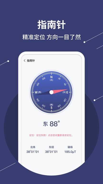 3、指南针,内置指南针功能,能够直接定位周围的方向,轻松找到方向所在,从而精准操作。