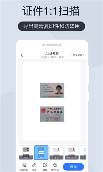 3、扫描任何纸质文件(如身份证、银行卡等);