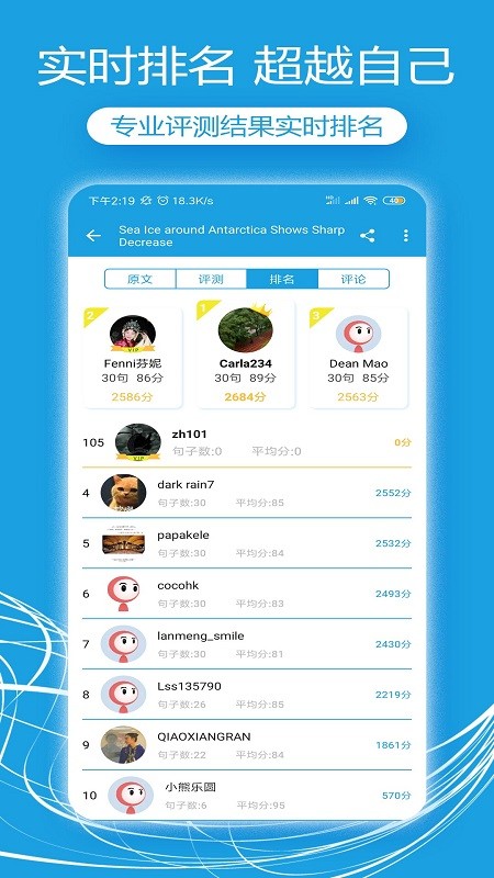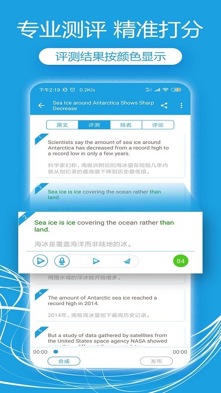 逐句录音、逐字朗读、配音解说、生词收藏、听力训练、单词游戏、老师点评。