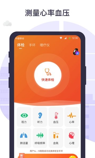 体检宝是一款专业的测量血糖、身体状态的健康检测软件,通过手机就可以轻松测量身体的各个方面,如心电图,血氧数值,以及血压等,让您对自己进行一个全面的了解,从而更好的调整生活习惯,实现健康管理,有需要的朋友欢迎下载。