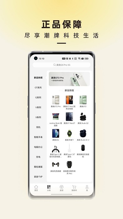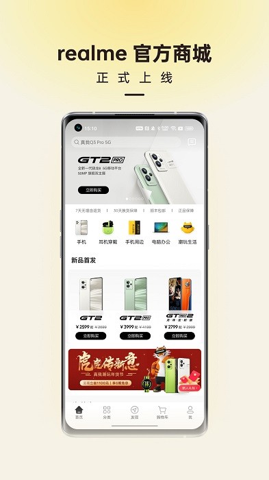 下载真我手机官方商城APP,打开并登录自己的账号后,在首页中选择自己想要的产品类型和品牌,