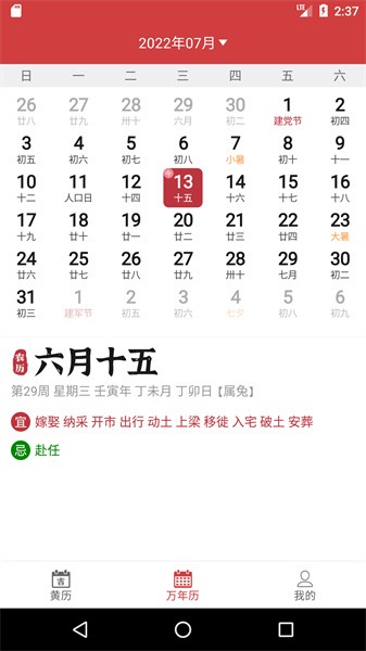 这款黄历是比较实用的一款手机日历app,这款软件可以提供黄历查询功能,还有农历、节气等等相关的内容,掌上黄历黄历黄历信息的手机软件非常的方便,需要的用户快来试试吧!