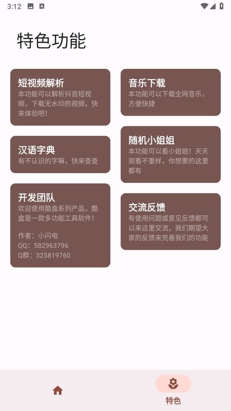 1、本软件集成了多个常用的安卓应用程序,例如微信QQ红包提醒、微信朋友圈分享、QQ刷赞、微信扫码付款、QQ群发图片、QQ视频播放、QQ音乐播放器、QQ阅读器、酷盒快手短视频、魔改MD5、酷盒换肤,酷盒小红书助手、小米手机助手、酷盒小白机助手、QQ美化、酷盒壁纸、酷盒主题商店、QQ阅读器、qq群发图片、酷盒表情包、酷盒音乐、酷盒直播等。你自己设置的个性化学习方式就是我们需要拥有的各种功能,例如自定义手机界面、定制屏幕壁纸等,这些功能可以帮助我们更好的管理自己的手机。使用时用户只需要选择自己喜欢的风格和主题就能快速完成应用操作,非常便捷。