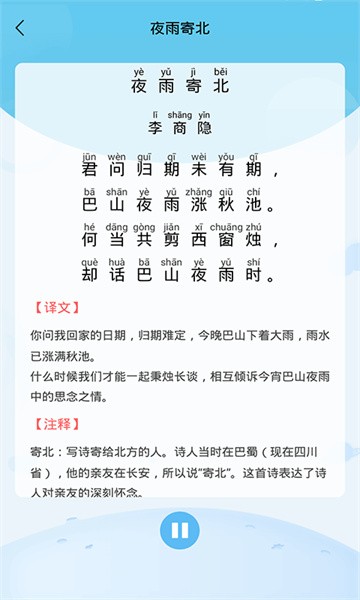 1、拼音点读:支持汉字点读服务,可对每一个汉字进行跟读发音训练,纠正发音问题;