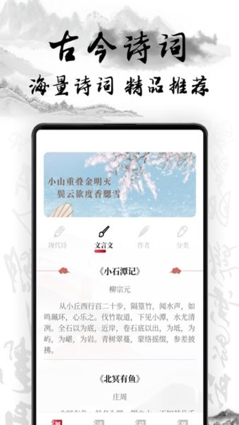 中国古代诗词大全app是一个古诗词学习软件,中国古诗词大全app是使用说明书软件,中华文化名著、经典文学作品、名人演讲视频等等,中国古诗词大全app是使用说明书软件,中华传统古典文学名著、典雅中国风韵。