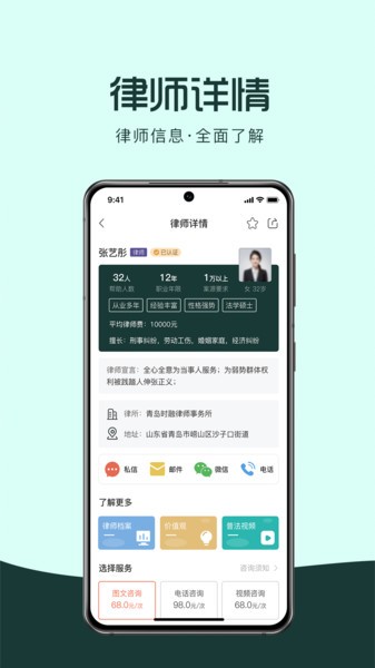 了解最新的法律资讯内容,查看详细的案例介绍信息,根据需求选择不同的律师进行沟通交流。软件中用户还可以在线预约线下律师看法律援助,非常方便快捷。