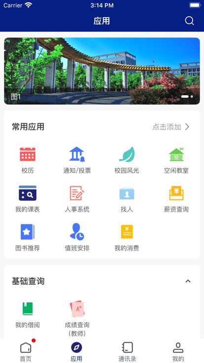 除了基本的办公电话外,还提供了图书借阅查询、成绩报告单查询等实用工具,满足学生不同的学习需求。