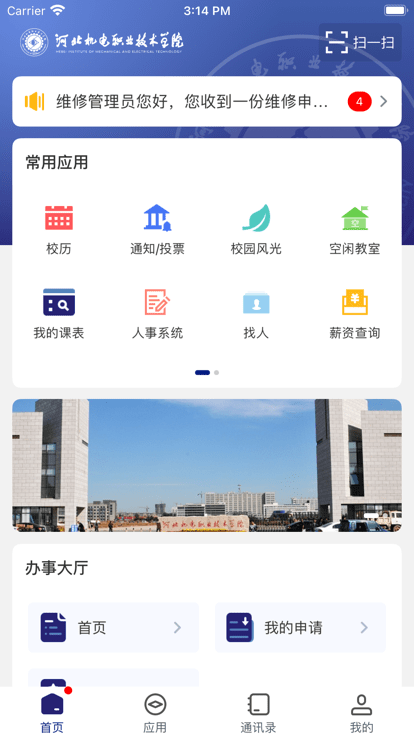 智慧校园服务app是一款专为广大河北省机电职业技术学院师生量身打造的在线学习平台。该软件旨在帮助学生更好地了解学校的信息和服务内容,同时提供实时通知提醒及课程安排情况;并且还可以及时推送校内重要通知公告,确保学生不错过任何重要信息。这款软件不仅界面清爽,使用简单,且安全性非常强。无论是在校内的通讯录还是个人账号管理上,都可以在这里进行安全可靠的沟通交流。