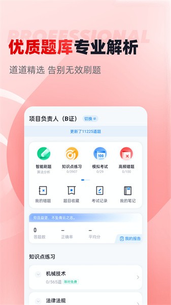 建筑三类人员学习专业知识的手机软件,建筑三类人员学习专业知识的平台,主要为建筑三类人员提供优质试题资源,随时随地都可以在线刷题复习;同时还可以帮助大家轻松提升自己成绩,让你顺利通过考试。