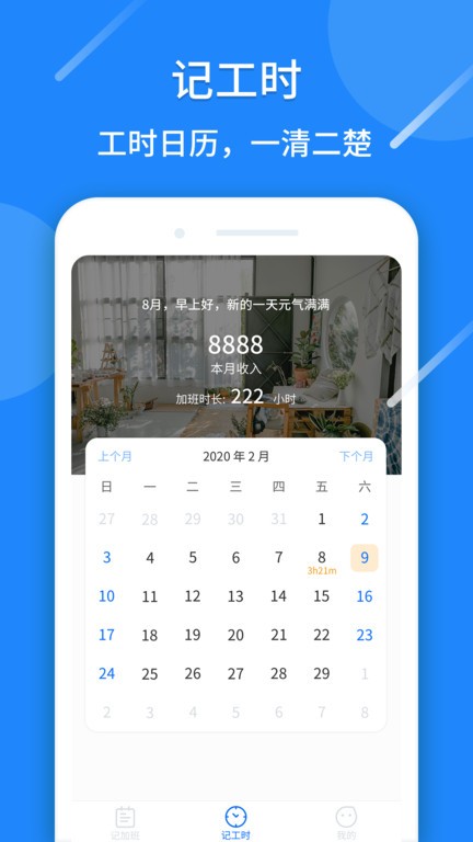 记工时打卡时间记录下自己每天的打卡时间,使用起来非常方便快捷。