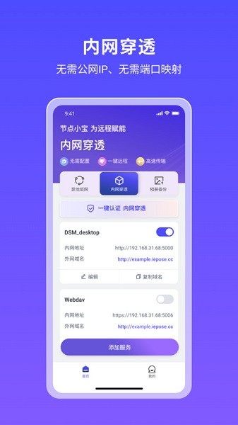 节点小宝是一款远程控制软件,使用这款软件可以实时跟踪你的设备网络,还可以将手机中的文件传输给电脑上,让手机也可以直接浏览到电脑的存储空间以及各种文件内容,有需要的用户就来下载吧!