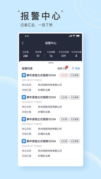 4、消防安全事件也能掌上查询到,方便根据需求分类处理消防安全事件;