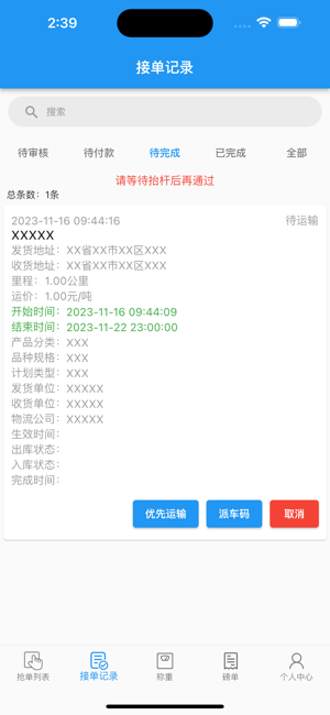2、根据自身所需填写货物资料即可添加或删除已发布的订单;