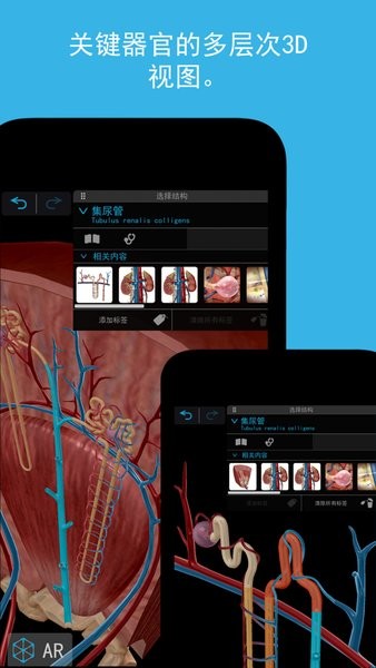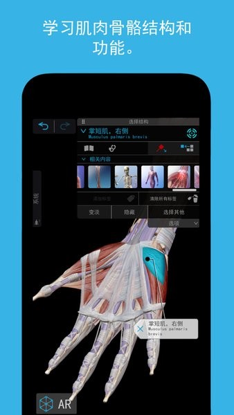 点击右上角的更多菜单栏,可以添加更多功能来探索更多精彩内容!该软件拥有超多精美的模型,可以让用户在手机上进行3d模型的查看与学习,还可以对人体构造进行详细的介绍和分析,让你能够更好的理解模型,欢迎大家下载使用!